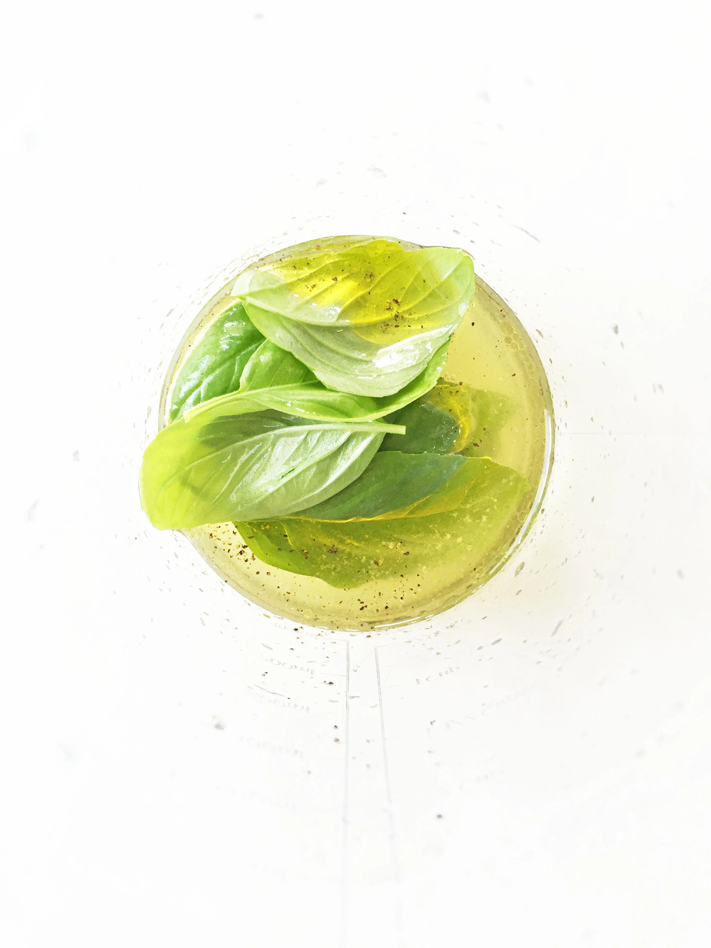 Combine the 2 Tbsp. Lemon Juice, 2 Tbsp. Extra Virgin Olive Oil, 2 Tbsp. White Wine Vinegar, 10 Fresh Basil Leaves and Salt & Pepper to Taste in a blender or food processor until smooth.